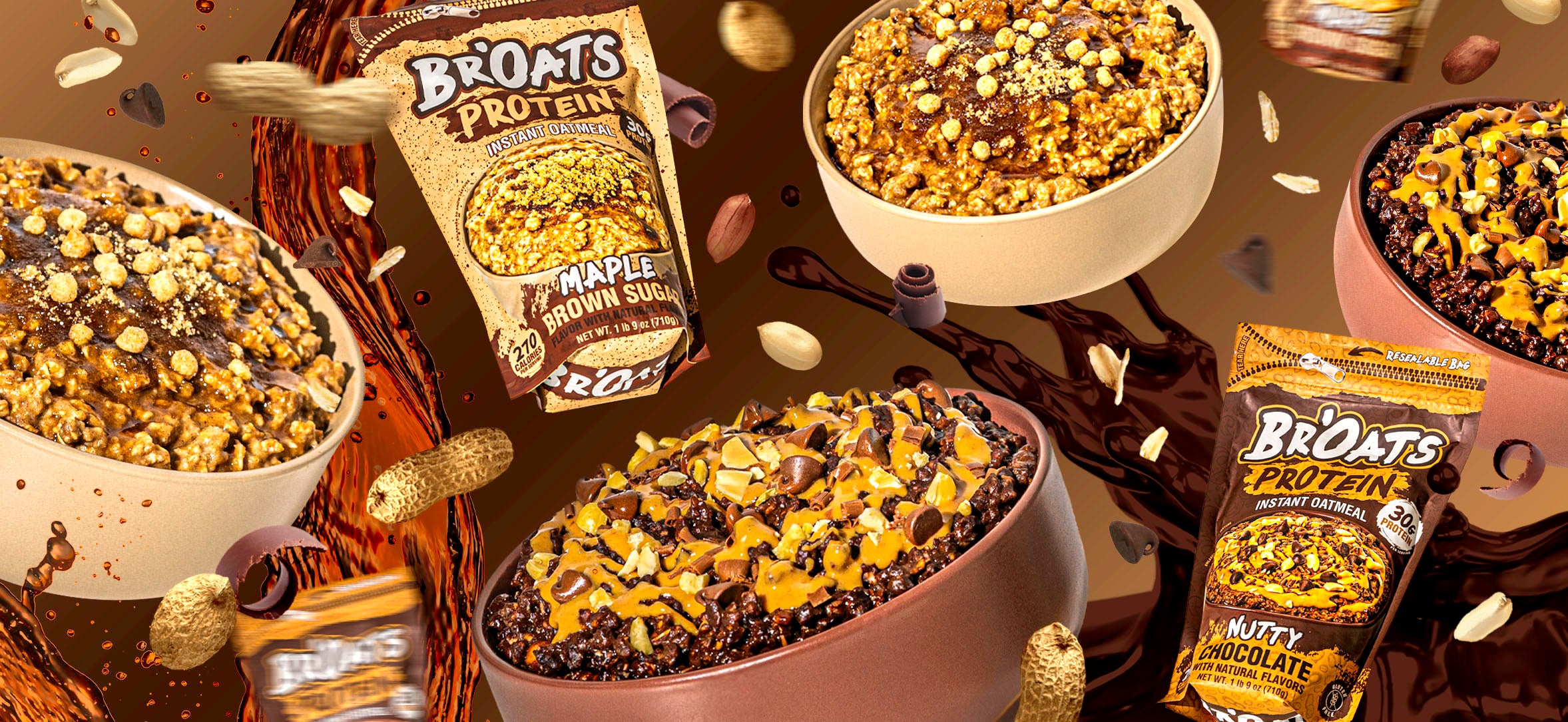 Savory and Decadent Chocolate Chips and Peanut Pieces in Our Nutty Chocolate Flavor. Sweet and Aromatic Tones in Our Maple Brown Sugar Flavor.